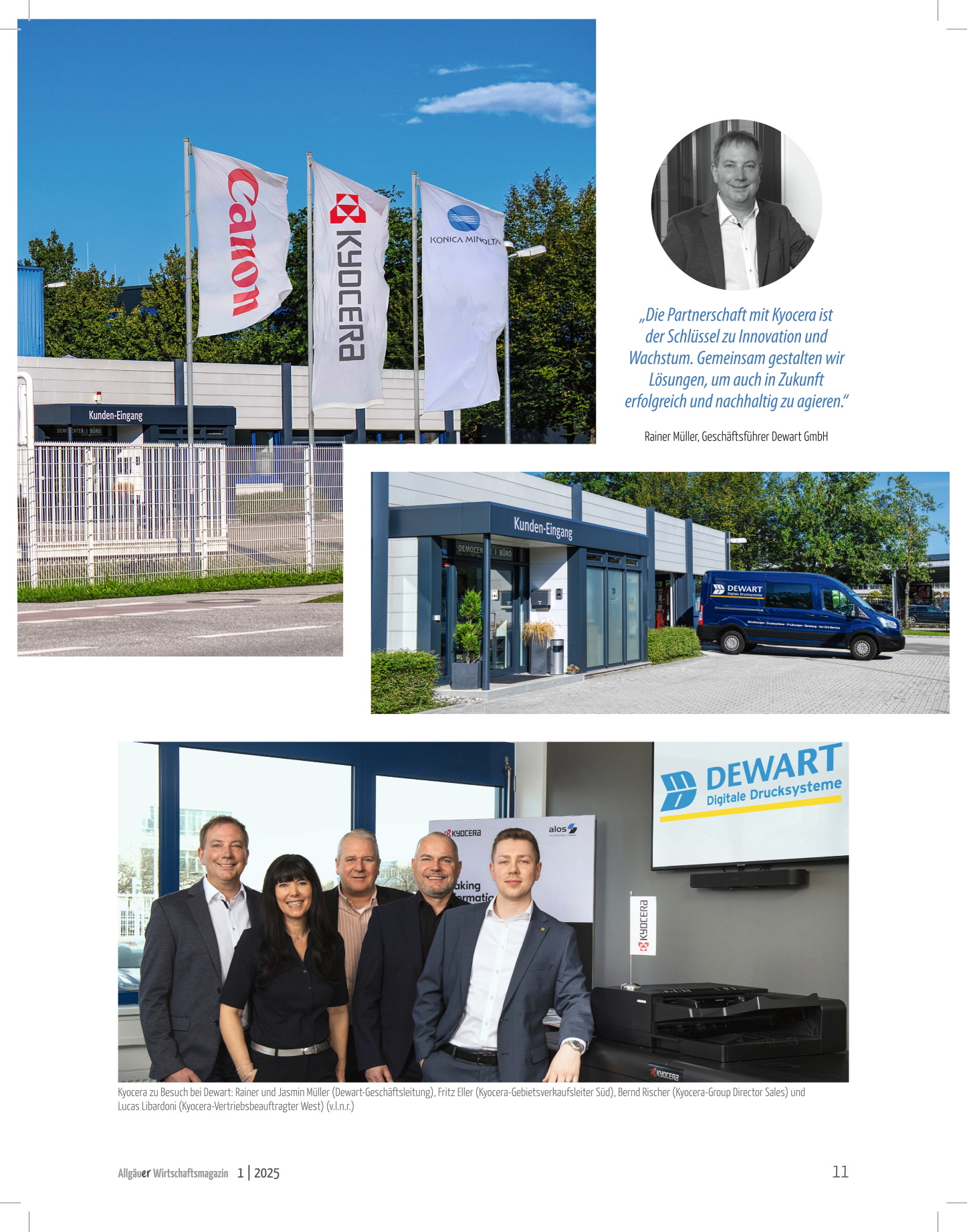 Die darauffolgende Expansion ist vor allem in Deutschland dem Einsatz der zertifizierten Production Printing Fachhändler geschuldet, die maßgeblich zum Erfolg von Drucktechnik „made by Konica Minolta“ beigetragen haben. Auch der nachhaltige Erfolg der Dewart GmbH als der führende Fachhändler im Allgäuer Raum basiert nicht zuletzt auf der bereits seit 2004 bestehenden Partnerschaft.