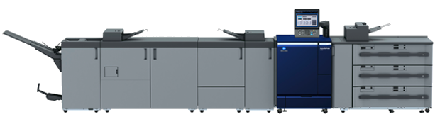 Schneller Farbdruck mit bis zu 81 DIN A4 Bögen / Minute und skalierbarer sowie modularer Bauweise. Umfangreiche Auswahl an Finishing-Optionen, inkl. Broschürenerstellung, Klebebindung und automatischer Ringbindung* für breite Palette an Drucksubstraten bis zu Papiergewicht von 360 g/m², auf den Stapel, im beidseitigen Bannerdruck von bis zu 864 mm oder einseitig bis zu 1.300 mm (*mit Zubehör)